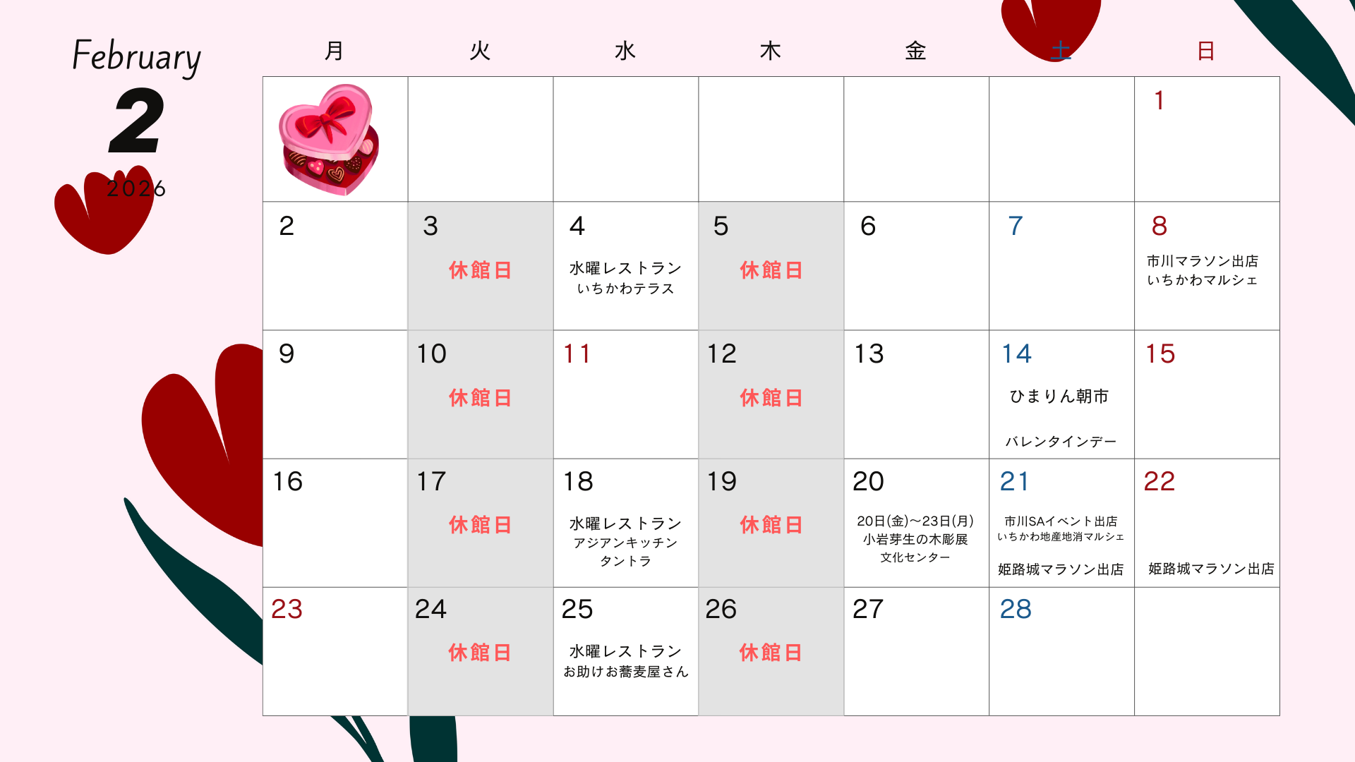 2月休館日のお知らせ